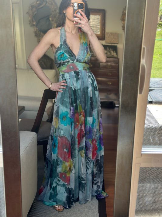 Vestido gasa halter floral