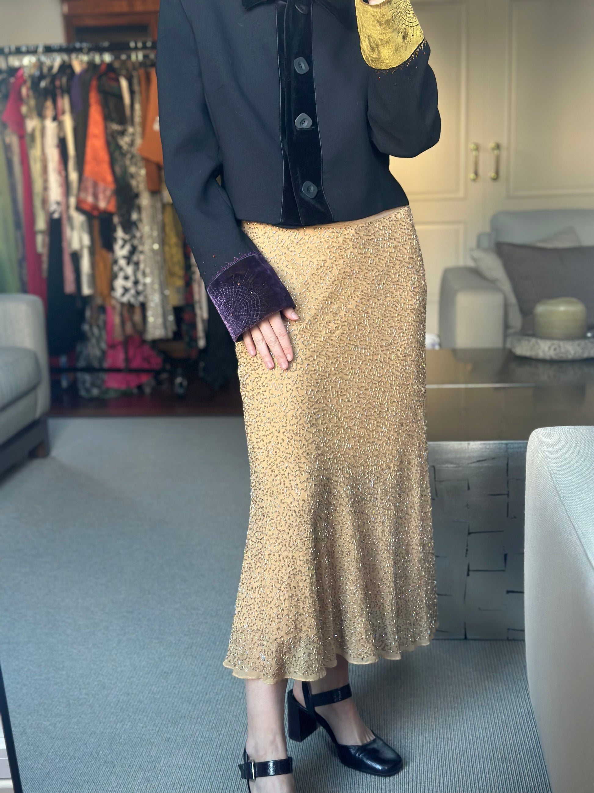 Falda dorada pedrería